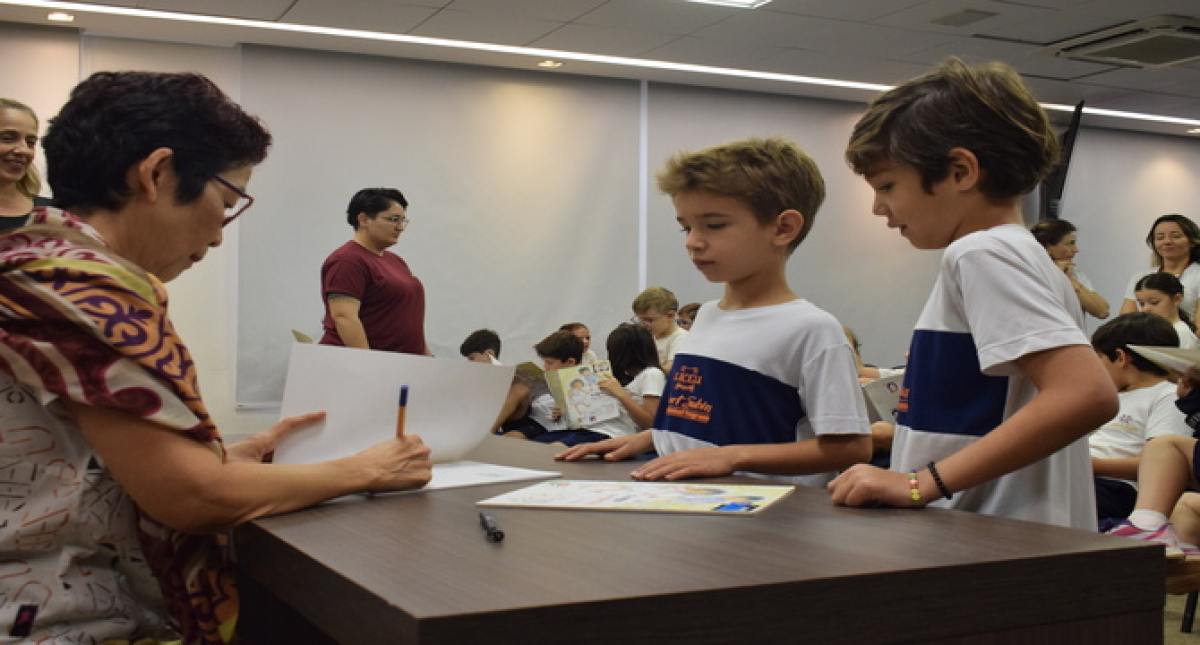 Pequenos leitores recebem autora premiada