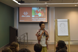 O evento começou com um bate-papo descontraído, durante o qual os alunos tiveram a oportunidade única de trocar ideias e experiências com a talentosa autora. Hiratsuka compartilhou insights sobre sua vida como escritora, inspirações para suas obras e os processos criativos por trás de seus livros e pinturas.